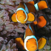 Description: Photo of two clown fish floating over an anenome