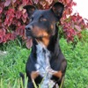 Description: Photo of a medium sized black and tan doog looking thoughtful