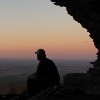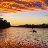 Description: Photo of a sunset over a lake with a kayaker on it