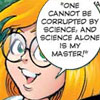 Description: Cartoon picture of Agatha Heterodyne and text "One cannot be corrupted by science, and science alone is my master!"